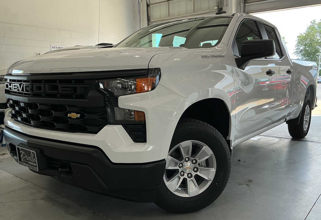 WT CONVENIENCE PACKAGE includes (AKO) tinted windows, (C49) rear-window defogger and (DLF) power mirrors, CHEVYTEC SPRAY-ON BEDLINER, BLACK (does not include spray-on liner on tailgate due to Black composite inner panel), WHEELS, 17" X 8" (43.2 CM X 20.3 CM) BRIGHT SILVER PAINTED ALUMINUM, MIRRORS, OUTSIDE HEATED POWER-ADJUSTABLE When (PQA) WT Safety Package is ordered, includes (DP6) high gloss Black mirror caps.), AUDIO SYSTEM, CHEVROLET INFOTAINMENT 3 SYSTEM 7" diagonal HD color touchscreen, AM/FM stereo, Bluetooth® audio streaming for 2 active devices, voice command pass-through to phone, Wireless Apple CarPlay® and Wireless Android Auto® compatibility (STD), ENGINE, TURBOMAX (310 hp [231 kW] @ 5600 rpm, 430 lb-ft of torque [583 Nm] @ 3000 rpm) (STD), TRANSMISSION, 8-SPEED AUTOMATIC, ELECTRONICALLY CONTROLLED with overdrive and tow/haul mode. Includes Cruise Grade Braking and Powertrain Grade Braking (STD). Chevrolet Work Truck with Summit White exterior and Jet Black interior features a 4 Cylinder Engine with 310 HP at 5600 RPM*.
