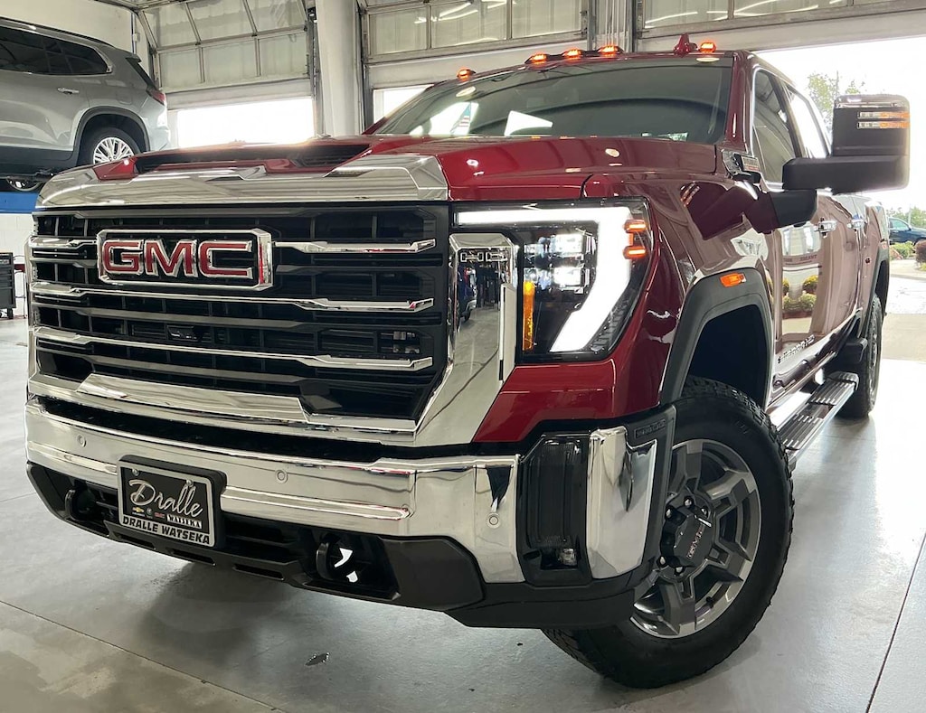 ENGINE, DURAMAX 6.6L TURBO-DIESEL V8, B20-DIESEL COMPATIBLE (470 hp [350.5 kW] @ 2800 rpm, 975 lb-ft of torque [1322 Nm] @ 1600 rpm) (Includes (K05) engine block heater.), SLT PREMIUM PACKAGE includes (PCY) SLT Convenience Package, (PDY) SLT Preferred Package, (PED) Sierra HD Pro Safety Plus Package, (BVQ) 6" rectangular, cab length Chrome assist steps, and (CGN) spray-on bedliner. No substitutions to the above content. X31 OFF-ROAD AND PROTECTION PACKAGE includes (X31) Off-Road suspension with Twin-tube Rancho shocks, (JHD) Hill Descent Control and (NZZ) skid plates (transfer case and oil pan), (CGN) spray-on bedliner, (RIA) All-weather floor liners, LPO and X31 badge Includes (Q7J) 20" Bright face wheels with dark painted pockets and (QF9) LT275/65R20 all-terrain, blackwall tires.), SLT CONVENIENCE PACKAGE includes (A50) bucket seats with (D07) center console, (KQV) ventilated front seats, (UBC) 2 USB Charge/Data ports first row inside center console, (U01) Roof Marker Lamps, (K4C) Wireless Charging and (UQA) Bose Premium Audio System, SIERRA HD PRO SAFETY PLUS PACKAGE includes (UKV) Trailer Side Blind Zone Alert, (UFG) Rear Cross Traffic Alert, (UVN) Bed View Camera, (UV2) HD Surround Vision, (UD5) Front and rear park assist and (TRG) Trailer Camera Provisions Includes (HS1) Safety Alert Seat.), SLT PREFERRED PACKAGE includes (KA6) rear heated seats, (A48) rear sliding power window, (UG1) Universal Home Remote and (KSG) Adaptive Cruise Control, AUDIO SYSTEM, 13.4" DIAGONAL PREMIUM GMC INFOTAINMENT SYSTEM WITH GOOGLE BUILT IN APPS SUCH AS NAVIGATION AND VOICE ASSISTANCE includes color touch-screen, multi-touch display, AM/FM stereo, Bluetooth® streaming audio for music and most phones; featuring wireless Android Auto® and Apple CarPlay® capability for compatible phones (STD), TRANSMISSION, 10-SPEED AUTOMATIC. GMC SLT with Volcanic Red Tintcoat exterior and Jet Black interior features a 8 Cylinder Engine with 470 HP at 2800 RPM*.