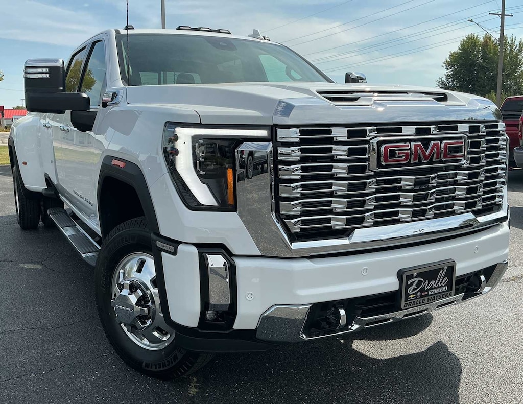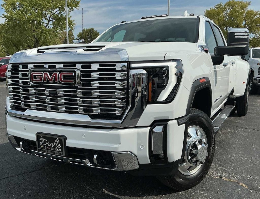 ENGINE, DURAMAX 6.6L TURBO-DIESEL V8, B20-DIESEL COMPATIBLE (470 hp [350.5 kW] @ 2800 rpm, 975 lb-ft of torque [1322 Nm] @ 1600 rpm) (Includes (K05) engine block heater.), TECHNOLOGY PACKAGE includes (DRZ) Rear Camera Mirror and (UV6) Multicolor 15" Diagonal Head-Up Display, GOOSENECK / 5TH WHEEL PREP PACKAGE -- Hitch platform to accept Gooseneck or 5th Wheel hitch. Includes hitch platform with tray to accept ball, stamped bed holes with removable caps installed and bed mounted 7-pin trailer harness (similar to UY2 harness). GVWR, 14,000 LBS. (6350 KG) WITH DUAL REAR WHEELS, AUDIO SYSTEM, 13.4" DIAGONAL PREMIUM GMC INFOTAINMENT SYSTEM with Google built in apps such as navigation and voice assistance, includes color touch-screen, multi-touch display, AM/FM stereo, Bluetooth® streaming audio for music and most phones; featuring wireless Android Auto® and Apple CarPlay® capability for compatible phones. (STD), TRANSMISSION, 10-SPEED AUTOMATIC. GMC Denali with Summit White exterior and Jet Black interior features a 8 Cylinder Engine with 470 HP at 2800 RPM*.