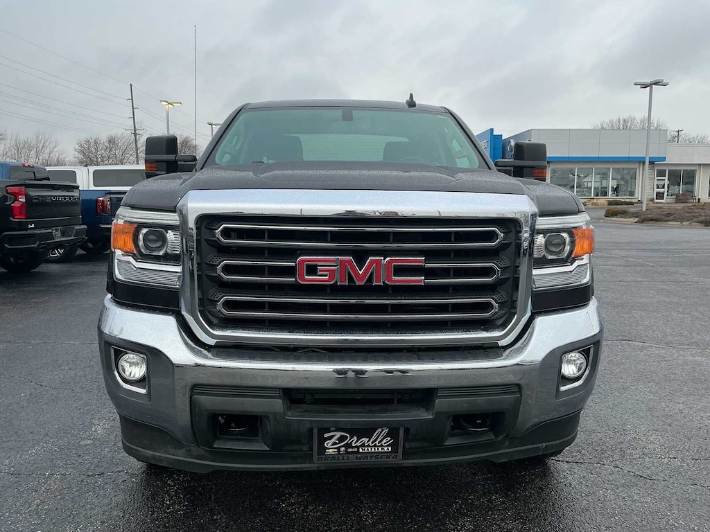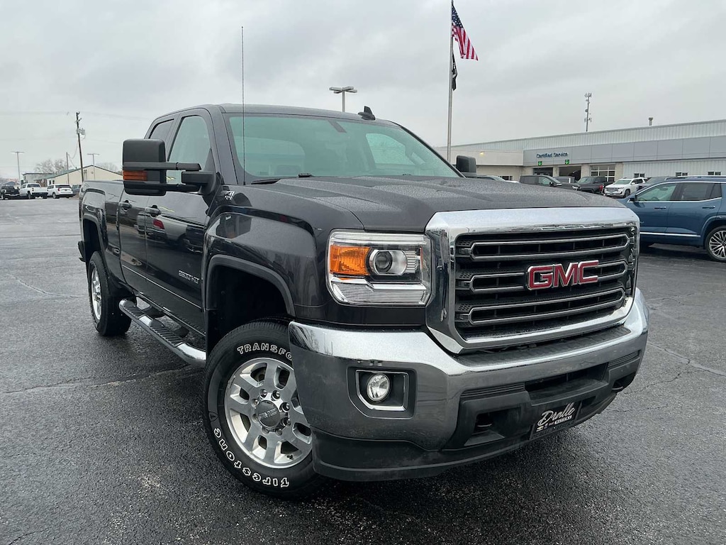 SLE PREFERRED PACKAGE includes (AG1) driver 10-way power seat adjuster when ordered with (AZ3) front 40/20/40 split-bench seat only, (BTV) Remote Vehicle Starter system, (T3U) front fog lamps, (UG1) Universal Home Remote, (C49) rear-window defogger, (N37) manual tilt and telescoping steering column, (KI4) 110-volt power outlet and (CJ2) dual-zone automatic climate control, SEATS, FRONT CLOTH BUCKET with (KA1) heated seat cushions and seat backs. Includes 10-way power driver and 6-way power front passenger seat adjusters, including driver/front passenger power recline and driver/front passenger power lumbar. Also includes adjustable head restraints, (D07) floor console and storage pockets. WHEELS, 18" (45.7 CM) POLISHED ALUMINUM includes 18" x 8" (45.7 cm x 20.3 cm) steel spare wheel. MIRRORS, OUTSIDE HEATED POWER-ADJUSTABLE VERTICAL CAMPER UPPER GLASS, MANUAL-FOLDING AND EXTENDING, BLACK. Includes integrated turn signal indicators consisting of 51 square inch flat mirror surface positioned over a 24.5 square inch convex mirror surface with a common head and lower convex spotter glass (convex glass is not heated and not power adjustable) and addition of Auxiliary cargo lamp for backing up (helps to see trailer when backing up with a trailer) and amber auxiliary clearance lamp (Includes (DD8) auto-dimming inside rearview mirror.), AUDIO SYSTEM, 8" DIAGONAL COLOR TOUCH SCREEN WITH INTELLILINK, AM/FM/SIRIUSXM WITH USB PORTS auxiliary jack, SD card slot, Bluetooth® streaming audio for music and most phones, hands-free smartphone integration, Pandora Internet radio and voice-activated technology for radio and phone (STD), ENGINE, VORTEC 6.0L VARIABLE VALVE TIMING V8 SFI E85-COMPATIBLE, FLEXFUEL capable of running on unleaded or up to 85% ethanol (360 hp [268.4 kW] @ 5400 rpm, 380 lb-ft of torque [515.0 N-m] @ 4200 rpm) with (E63) fleetside pickup box; (322 hp [240.1 kW] @ 4400 rpm, 380 lb-ft of torque [515.0 N-m] @ 4200 rpm) with (ZW9) pickup box delete (STD), TRANSMISSION, 6-SPEED AUTOMATIC, HEAVY-DUTY, ELECTRONICALLY CONTROLLED with overdrive and tow/haul mode. Includes Cruise Grade Braking and Powertrain Grade Braking (STD). GMC SLE with Iridium Metallic exterior and Jet Black interior features a 8 Cylinder Engine with 360 HP at 5400 RPM*.
