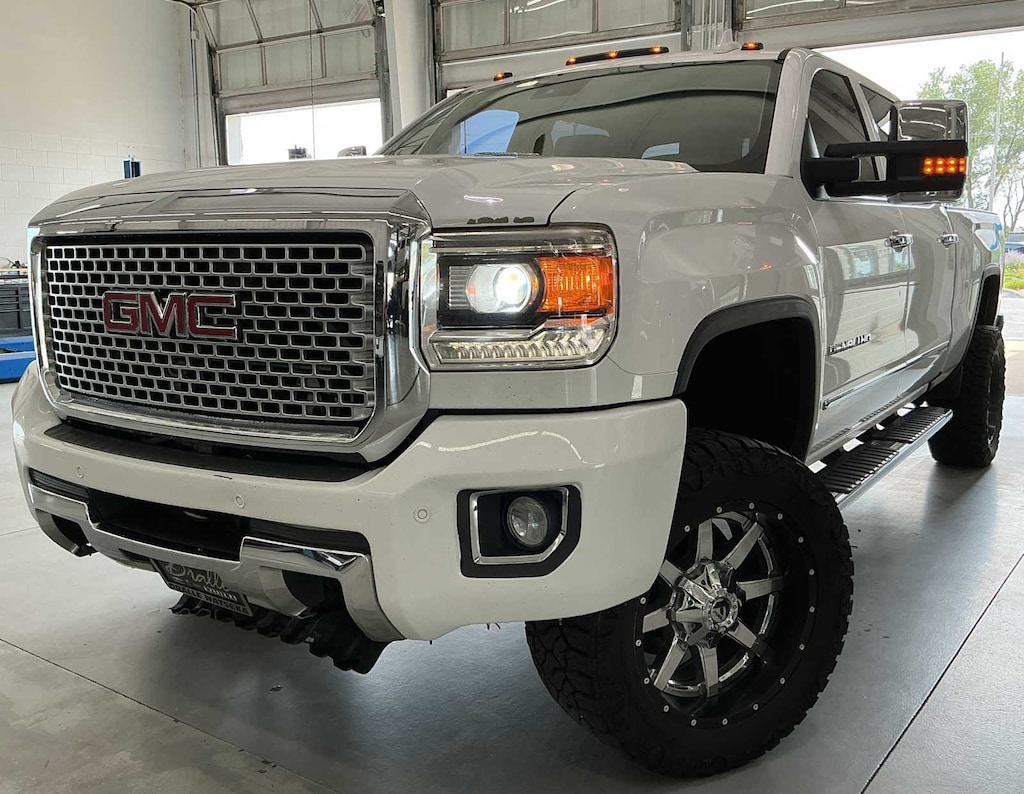 ENGINE, DURAMAX 6.6L TURBO DIESEL V8, B20-DIESEL COMPATIBLE (397 hp [296.0 kW] @ 3000 rpm, 765 lb-ft of torque [1032.8 N-m] @ 1600 rpm) Includes (K40) exhaust brake and (K05) engine block heater. DRIVER ALERT PACKAGE includes (UFL) Lane Departure Warning, (UEU) Forward Collision Alert, and Safety Alert Seat, GOOSENECK / 5TH WHEEL PREP PACKAGE Hitch platform to accept Gooseneck or Fifth wheel hitch. Includes Hitch platform with tray to accept ball and drilled box holes with caps installed, box mounted 7-pin trailer harness (similar to (UY2) harness). MIRRORS, OUTSIDE HEATED POWER-ADJUSTABLE VERTICAL TRAILERING, MEMORY-EQUIPPED, UPPER GLASS, POWER-FOLDING AND MANUAL EXTENDING, CHROME. Includes integrated turn signal indicators, consisting of 51 square inch flat mirror surface positioned over a 24.5 square inch convex mirror surface with a common head and lower convex spotter glass (convex glass is not heated and not power-adjustable) and addition of Auxiliary cargo lamp for backing up (helps to see trailer when backing up with a trailer) and amber auxiliary clearance lamp, AUDIO SYSTEM, 8" DIAGONAL COLOR TOUCH SCREEN NAVIGATION WITH INTELLILINK, AM/FM/SIRIUSXM HD Radio with USB ports, auxiliary jack, Bluetooth® streaming audio for music and most phones, advanced phone integration featuring Apple CarPlay®, Pandora Internet radio and voice-activated technology for radio and phone (STD), TRANSMISSION, ALLISON 1000 6-SPEED AUTOMATIC, ELECTRONICALLY CONTROLLED with overdrive, electronic engine grade braking and tow/haul mode. GMC Denali with SUMMIT WHITE exterior and JET BLACK DENALI interior features a 8 Cylinder Engine with 397 HP at 3000 RPM*.