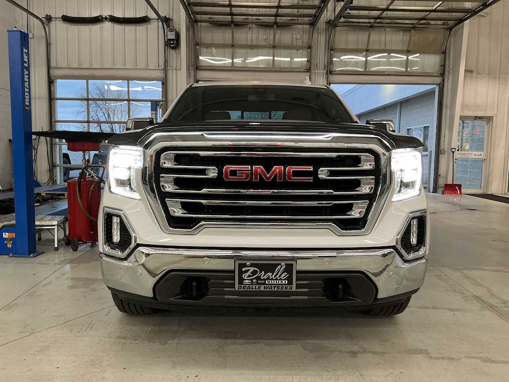 SLT PREMIUM PLUS PACKAGE includes (PCY) SLT Convenience Package, (PDY) SLT Preferred Package, (PQB) Driver Alert Package I, (PDJ) Driver Alert Package II, (NZM) 20" Polished aluminum wheels, (BVT) Chrome assist steps and (CGN) spray-on bedliner. SLT CONVENIENCE PACKAGE includes (A50) bucket seats with (D07) center console, (KQV) ventilated front seats, (A48) rear sliding power window, (UG1) Universal Home Remote, (MCZ) 2 USB ports with auxiliary input and (KA6) rear heated seats, DRIVER ALERT PACKAGE II includes (UEU) Forward Collision Alert, (UHX) Lane Keep Assist/Lane Departure Warning, (UHY) Automatic Emergency Braking, (UKJ) Front Pedestrian Braking, (TQ5) IntelliBeam headlamps, (KSG) Adaptive Cruise Control-Camera and (UE4) Following Distance Indicator Includes (HS1) Safety Alert Seat. SLT PREFERRED PACKAGE includes (IOT) 8" diagonal Premium GMC Infotainment with navigation, (UQA) Bose Premium Audio System and (K4C) Wireless Charging, DRIVER ALERT PACKAGE I includes (UD5) Front and Rear Park Assist, (UKC) Lane Change Alert with Side Blind Zone Alert and (UFG) Rear Cross Traffic Alert (Includes Perimeter Lighting. Includes (V76) recovery hooks on 2WD models. X31 OFF-ROAD PACKAGE includes Off-Road suspension, (JHD) Hill Descent Control, (NZZ) skid plates, (K47) high-capacity air filter and X31 hard badge Includes (NQH) 2-speed transfer case, (XCK) 265/65R18SL all-terrain, blackwall tires, (N10) dual exhaust. AUDIO SYSTEM, PREMIUM GMC INFOTAINMENT SYSTEM WITH NAVIGATION AND 8" DIAGONAL COLOR TOUCH-SCREEN, INCLUDES MULTI-TOUCH DISPLAY, AM/FM STEREO Bluetooth® streaming audio for music and most phones; featuring Android Auto® and Apple CarPlay® capability for compatible phones, advanced voice recognition, in-vehicle apps, personalized profiles for infotainment and vehicle settings. Includes greater memory Note: (PZ8) Hitch Guidance with hitch view is included with trim.), ENGINE, 5.3L ECOTEC3 V8 (355 hp [265 kW] @ 5600 rpm, 383 lb-ft of torque [518 Nm] @ 4100 rpm); featuring all-new Dynamic Fuel Management that enables the engine to operate in 17 different patterns between 2 and 8 cylinders, depending on demand, to optimize power delivery and efficiency (STD), TRANSMISSION, 10-SPEED AUTOMATIC, ELECTRONICALLY CONTROLLED with overdrive and tow/haul mode. Includes Cruise Grade Braking and Powertrain Grade Braking (STD). GMC SLT with WHITE FROST TRICOAT exterior and DARK WALNUT / SLATE interior features a 8 Cylinder Engine with 355 HP at 5600 RPM*.