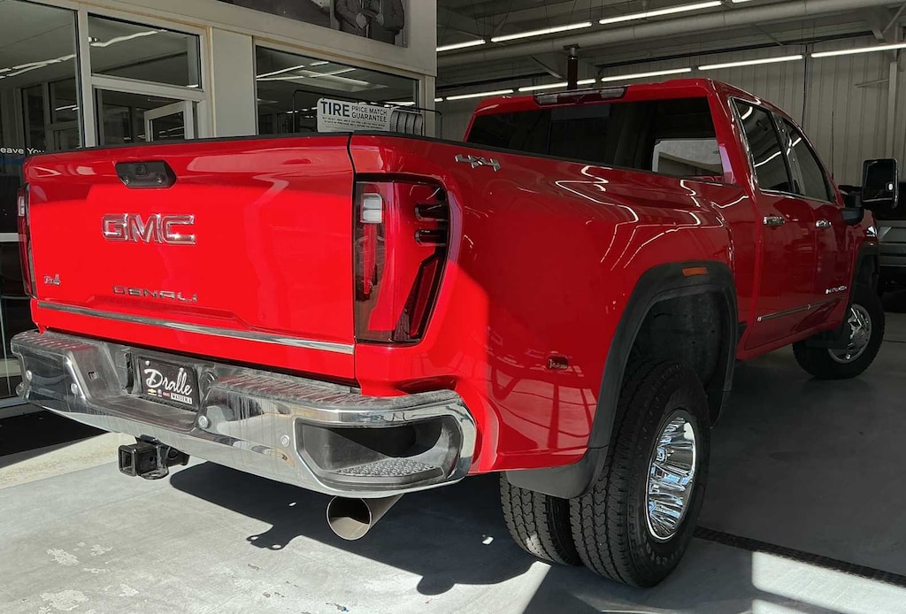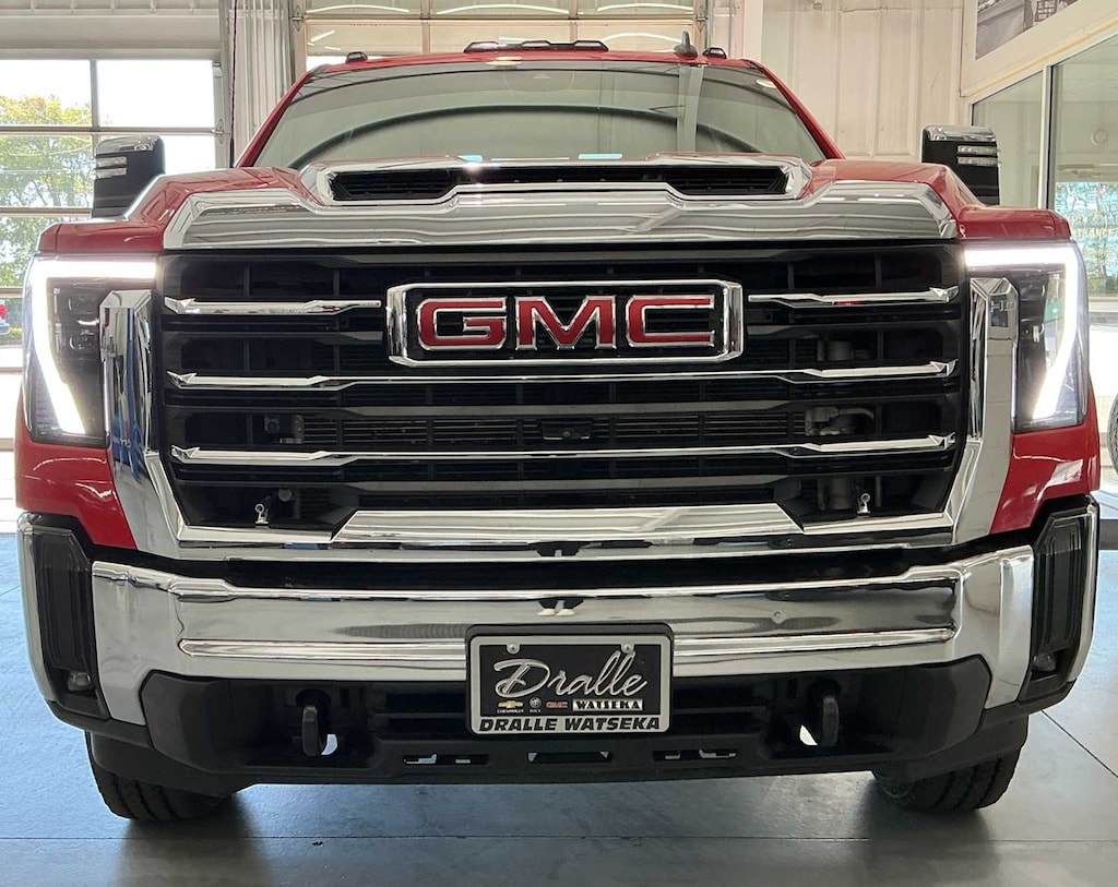 ENGINE, DURAMAX 6.6L TURBO-DIESEL V8, B20-DIESEL COMPATIBLE (470 hp [350.5 kW] @ 2800 rpm, 975 lb-ft of torque [1322 Nm] @ 1600 rpm) (Includes (K05) engine block heater.), SLE VALUE PACKAGE includes (PCQ) SLE Convenience package, (CGN) Bedliner, Spray-on, (ZM9) SLE Heat Package and (B59) Remote start, PREFERRED PACKAGE includes (UET) In Vehicle Trailering App, (PZ8) Hitch Guidance with Hitch View, (KSG) Adaptive Cruise Control and (UF2) cargo bed LED lighting; Crew Cab and Double Cab models also include (UG1) Universal Home Remote and (A48) rear sliding power window Crew Cab models include (R7O) Cloth Rear Seat Storage Package.), SIERRA HD PRO SAFETY PLUS PACKAGE includes (UKV) Trailer Side Blind Zone Alert, (UFG) Rear Cross Traffic Alert; Crew Cab and Double Cab models include (UVN) Bed View Camera, (UV2) HD Surround Vision and (TRG) Trailer Camera Provisions (Includes (UD7) Rear Park Assist and (UET) In Vehicle Trailering App. SLE CONVENIENCE PACKAGE includes (KI4) 120-volt power outlet, (KC9) 120-volt bed-mounted power outlet, (CJ2) dual climate control, (A2X) 10-way power driver seat including power lumbar, (N37) manual tilt/telescoping steering column, (UBI) 2 charge-only USB ports and (T3U) LED fog lights; Single rear wheel models also include (U01) Roof Marker Lamps, REMOTE START PACKAGE includes (BTV) Remote Start, (UTJ) content theft alarm and (C49) rear-window defogger, MIRRORS, OUTSIDE POWER-ADJUSTABLE VERTICAL TRAILERING WITH HEATED AND AUTO-DIMMING UPPER GLASS lower convex mirrors, turn signal indicators, puddle lamps, (U12) perimeter lighting, auxiliary lighting, power folding/manual extending (extends 3.31" [84.25mm]), Black Includes Perimeter Lighting and (DD8) auto-dimming rearview mirror.), SLE HEAT PACKAGE includes (KA1) heated driver and passenger seats, (KI3) heated steering wheel, GVWR, 14,000 LBS. (6350 KG) WITH DUAL REAR WHEELS, AUDIO SYSTEM, 13.4" DIAGONAL PREMIUM GMC INFOTAINMENT SYSTEM with Google built in apps such as navigation and voice assistance, includes color touch-screen, multi-touch display, AM/FM stereo, Bluetooth® streaming audio for music and most phones; featuring wireless Android Auto® and Apple CarPlay® capability for compatible phones. (STD), TRANSMISSION, ALLISON 10-SPEED AUTOMATIC. GMC SLE with Cardinal Red exterior and Jet Black interior features a 8 Cylinder Engine with 401 HP at 5200 RPM*.